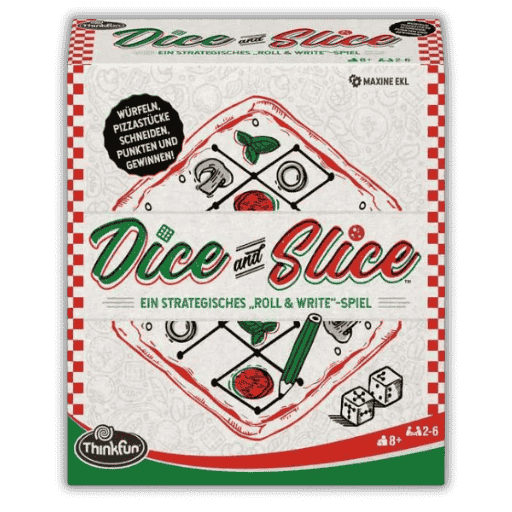Wie bei einem Schnittmuster tragen wir einen der beiden geworfenen Würfel ein und schneiden so eine große Pizza in kleinere Stücke, dabei sollen diese möglichst groß sein und bestenfalls noch Sonderwünsche erfüllen.